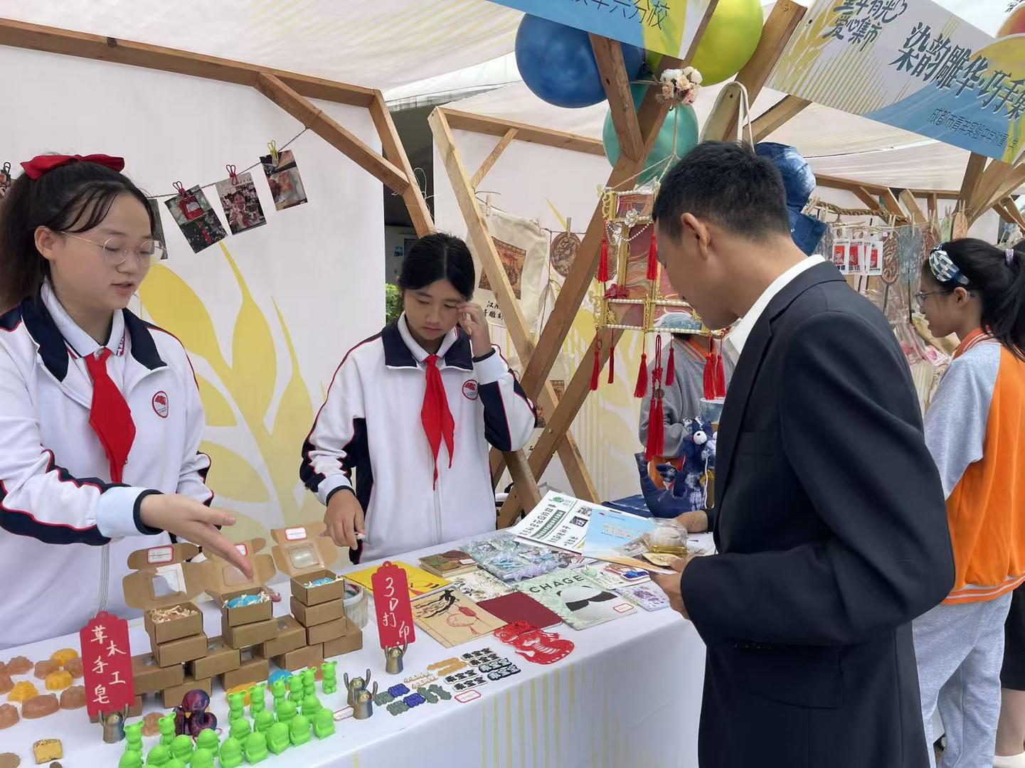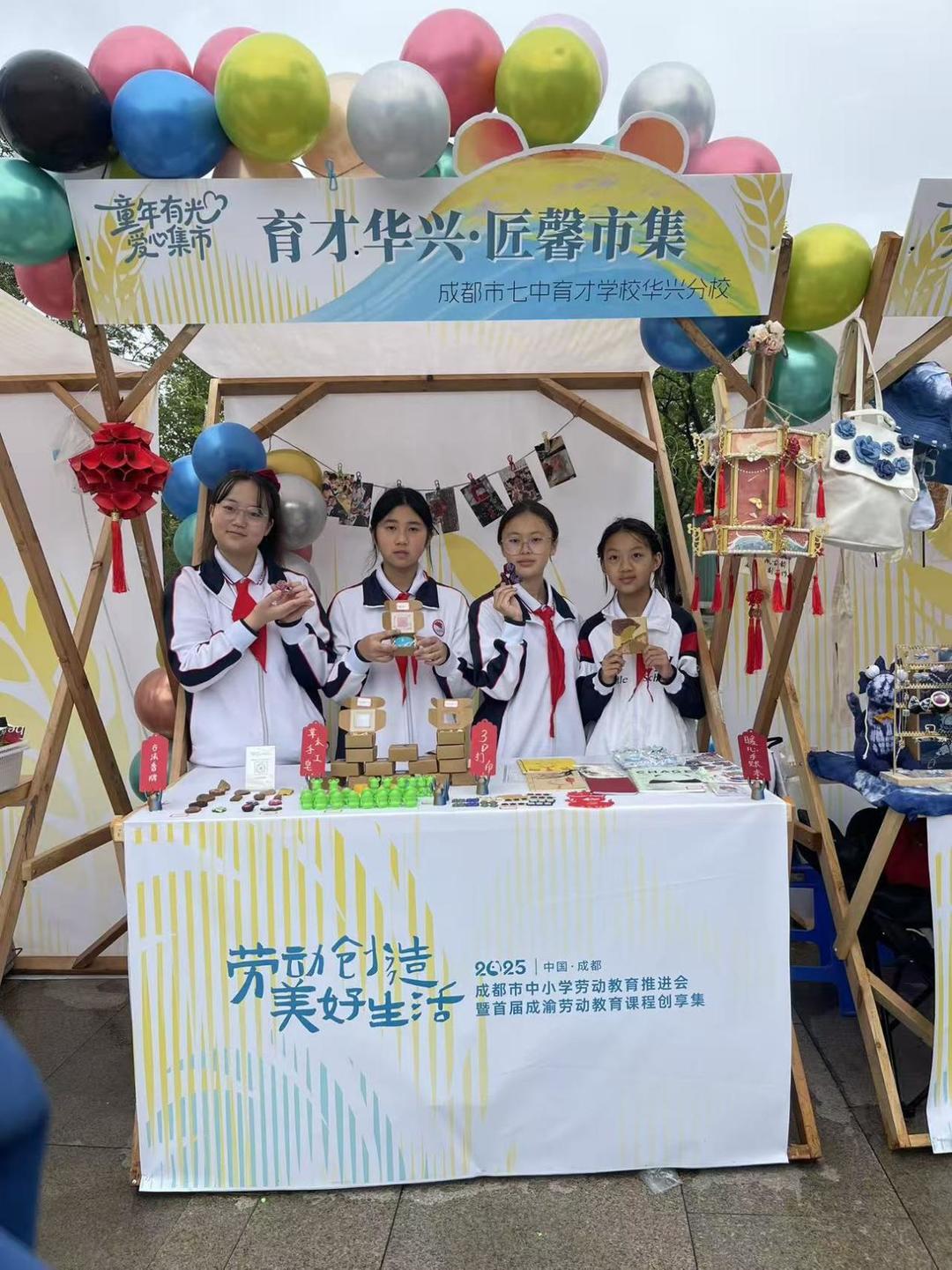 这是2025成都市中小学劳动教育推进会暨首届成渝劳动教育课程创享集上属于育才华兴的摊位“育才华兴匠馨市集”,售卖的东西均来自学生们劳动课上的手工作品。