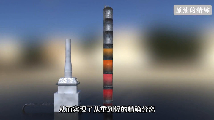 原油精炼的第一步是从蒸馏开始的,油被加热成蒸汽后会送入蒸馏装置,随着蒸汽上升并逐渐冷却,它又会重新变回液体。借助层层堆叠的塔盘,不同重量的液体就能够被轻松收集和分离。较轻的液体只需简单处理就能用于汽车和卡车。但如果仔细观察实际的蒸馏塔,并不会看到冷却盘管。