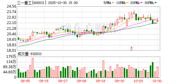 三一重工10月30日公告,2025年第三季度实现营业收入212.07亿元,同比增长10.73%;归属于上市公司股东的净利润19.19亿元,同比增长48.18%;基本每股收益0.228元。前三季度实现营业收入657.41亿元配资伐,同比增长13.56%;归属于上市公司股东的净利润71.36亿元,同比增长46.58%;基本每股收益0.8455元。
